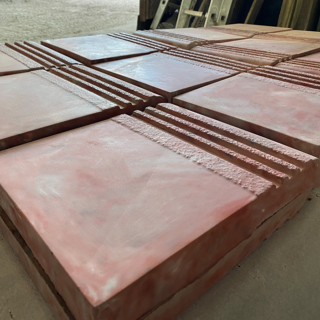 Мы изготавливаем плитку методом вибролитья, используя гранитный отсев в качестве основного компонента смеси. Это придаёт изделиям повышенную прочность.